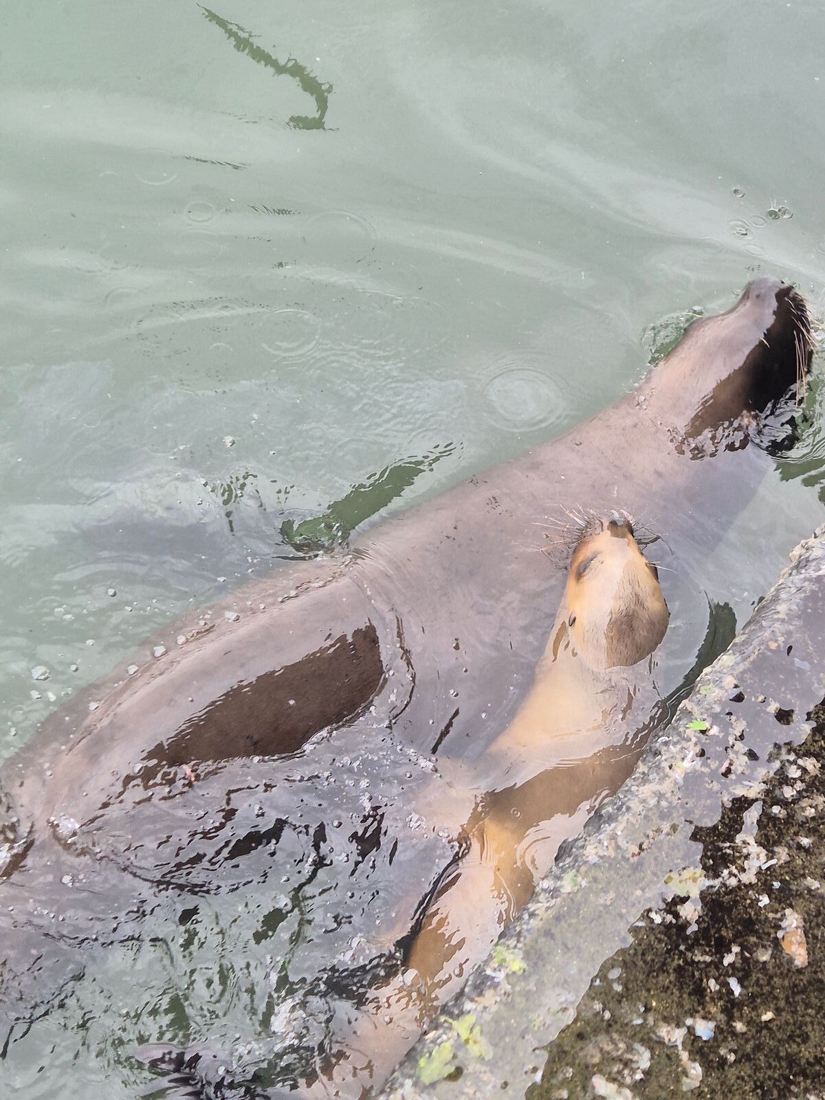Direkt an der Tenderpier gibt es einige Fischer, Verkaufsstände. Hier kann man Seelöwen sehen, die auf Fischreste aus sind. Wir lieben Tiere und so haben wir hier doch schon recht lange Zeit verbracht und diese imposanten Tiere beobachtet. Irgendwann haben wir uns dann doch losgerissen und sich die einmal um die Halbinsel gelaufen. An der Pier werden Karten mit einem eingezeichneten Spaziergang vorbei an allen Sehenswürdigkeiten verteilt. Wer gut zu Fuß ist, kann alles erlaufen. Bei uns war es bewölkt und stürmisch. Auf der Altantik-Seite war es am Strand nicht schön. Nachdem wir im „Zentrum“ alles gesehen haben, sind wir den Strand auf der Seite des Rios de la Plata hoch und dort in ne Strandbar. Man sollte beachten, dass es der Nobelort von Südamerika ist. Insofern darf man auch Sylter Preise erwarten. 2 Eis 10 EUR, 2 Drinks ist der Bar 20 EUR. Trotz des widrigen Wetters haben wir einen schönen Tag verbracht. Wir sind insgesamt 15km gelaufen.