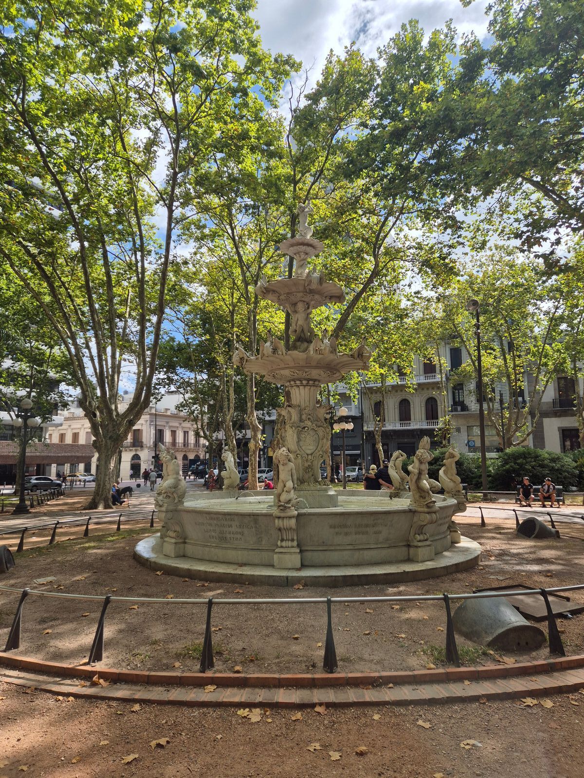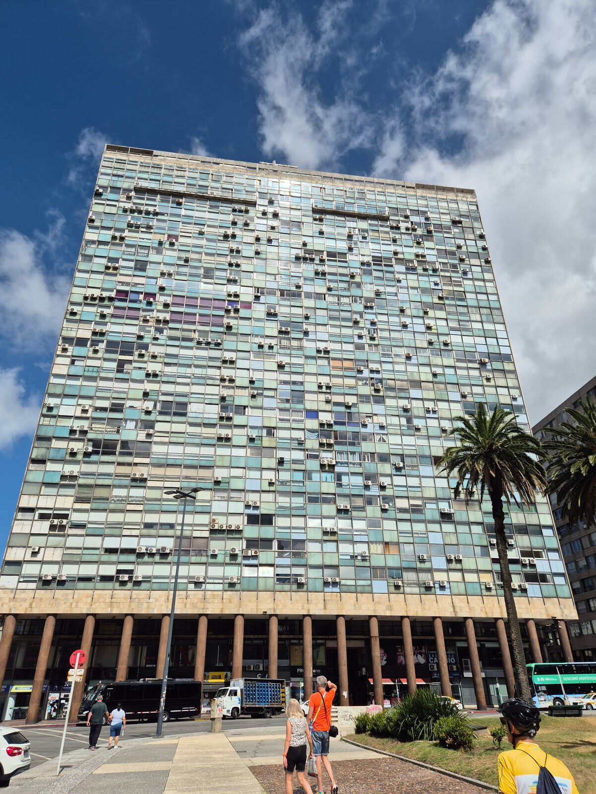 In Montevideo hatten wir den Fahrradausflug mit dem Bike Guide Tobias vom Schiff. Ich glaube wir war der Bikeguide, sowie 6 oder 7 Gäste + 2 weitere von der Crew dabei. Die Fahrräder waren Mountainbikes mit 3 x 10 Gänge. Für Montevideo natürlich völlig überzogen. Ich glaube ich habe max. 3 oder 4 Gänge benutzt. Wir sind vom Hafen direkt in die angrenzende Altstadt gefahren, haben am Plaza Constitucion mit Kirche gehalten. Danach sind wir zum Plaza Independencia gefahren und haben dort einen weiteren Stopp mit ausführlichen Infos von Tobias zu den umliegenden Gebäuden und den Monumenten. Nächster Stopp war dann an einem Aussichtsturm mit rundum Sicht auf die komplette Stadt.