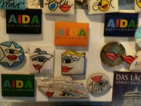 für die rechteckigen Pins mit dem AIDA-Schriftzug stelle ich mich auch gern in die Reihe an.