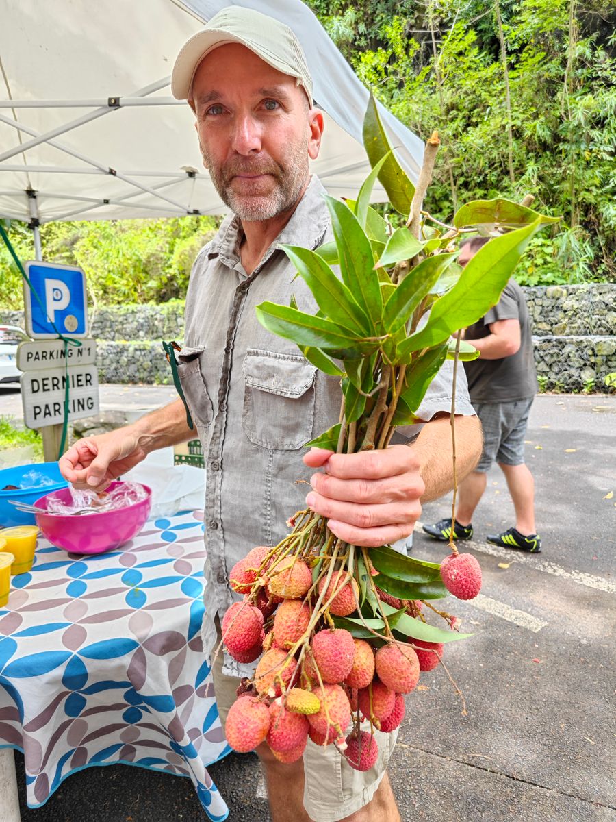 Am zweiten Tag 01.12.2023 von La Rèunion haben wir den Ausflug über AIDA gebucht "Vom Meer bis zum Gipfel des Vulkans". Wir durften gleich vom Schiff in den Bus einsteigen. Man musste den Reisepass mitführen, aber wir mussten ihn nie vorweisen. Unser Guide war eine Dame, leider hab ich den Namen vergessen. Es ist eine sehr lange Busfahrt und es wird eine 15 Min. Pause auf einer Tankstelle eingelegt um eine Toilette aufzusuchen. Während der Fahrt hat uns die Dame immer alles erklärt, sie hatte eine sehr beruhigende Stimme und man meinte sie lese uns aus einem Buch vor. Es war sehr schön zuzuhören. Endlich ging es rauf auf den Berg und das Wetter war uns gut gesinnt. Die Sonne schien und wir hatten herrliche Sicht. Der erste Stopp war eine Aussichtsplattform. Es war eine gigantische Aussicht,wir waren bereits auf 2050 hm. 20 min hatten wir Zeit um Fotos zu knippsen.