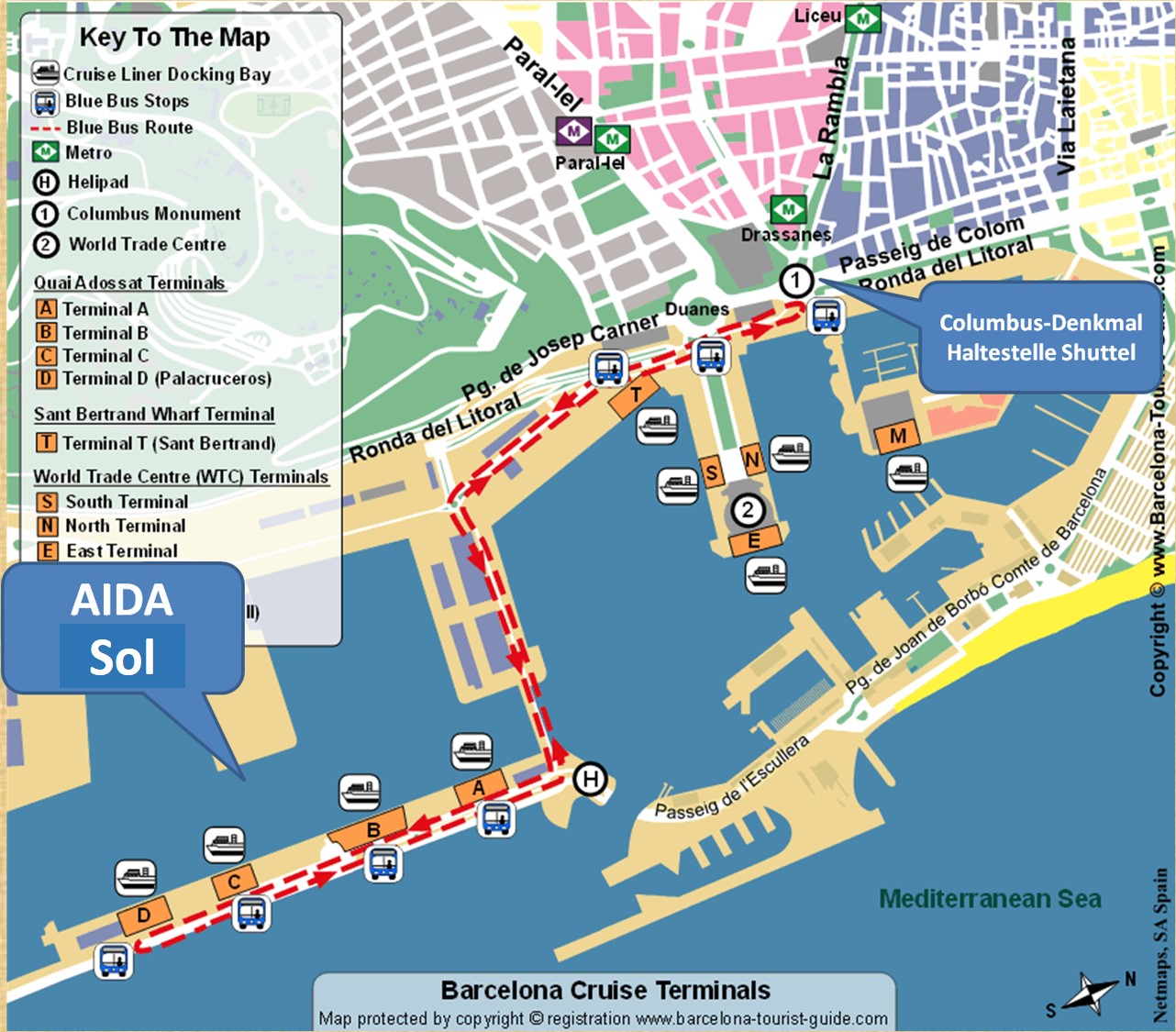 den preiswerteren hafenseitig bereitgestellten Shuttleservice zu nutzen.