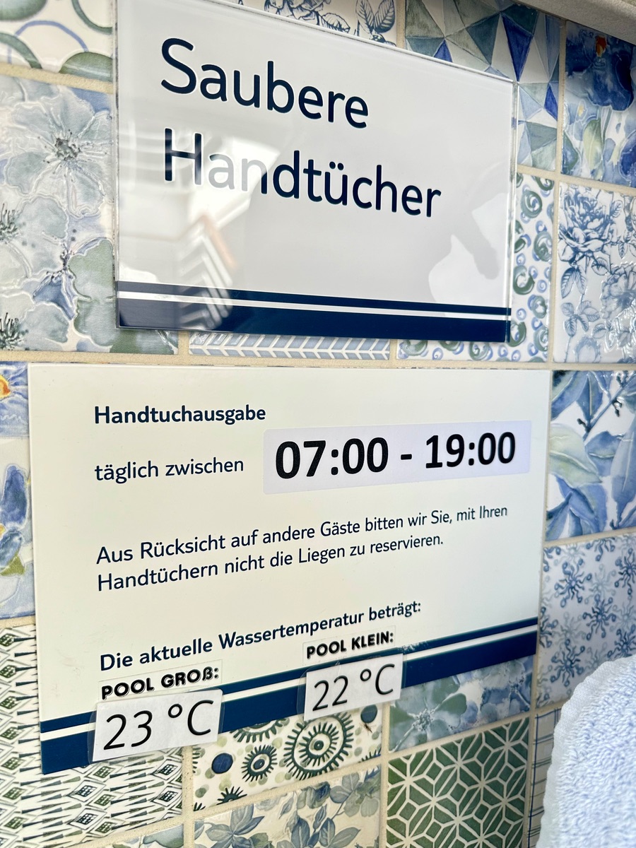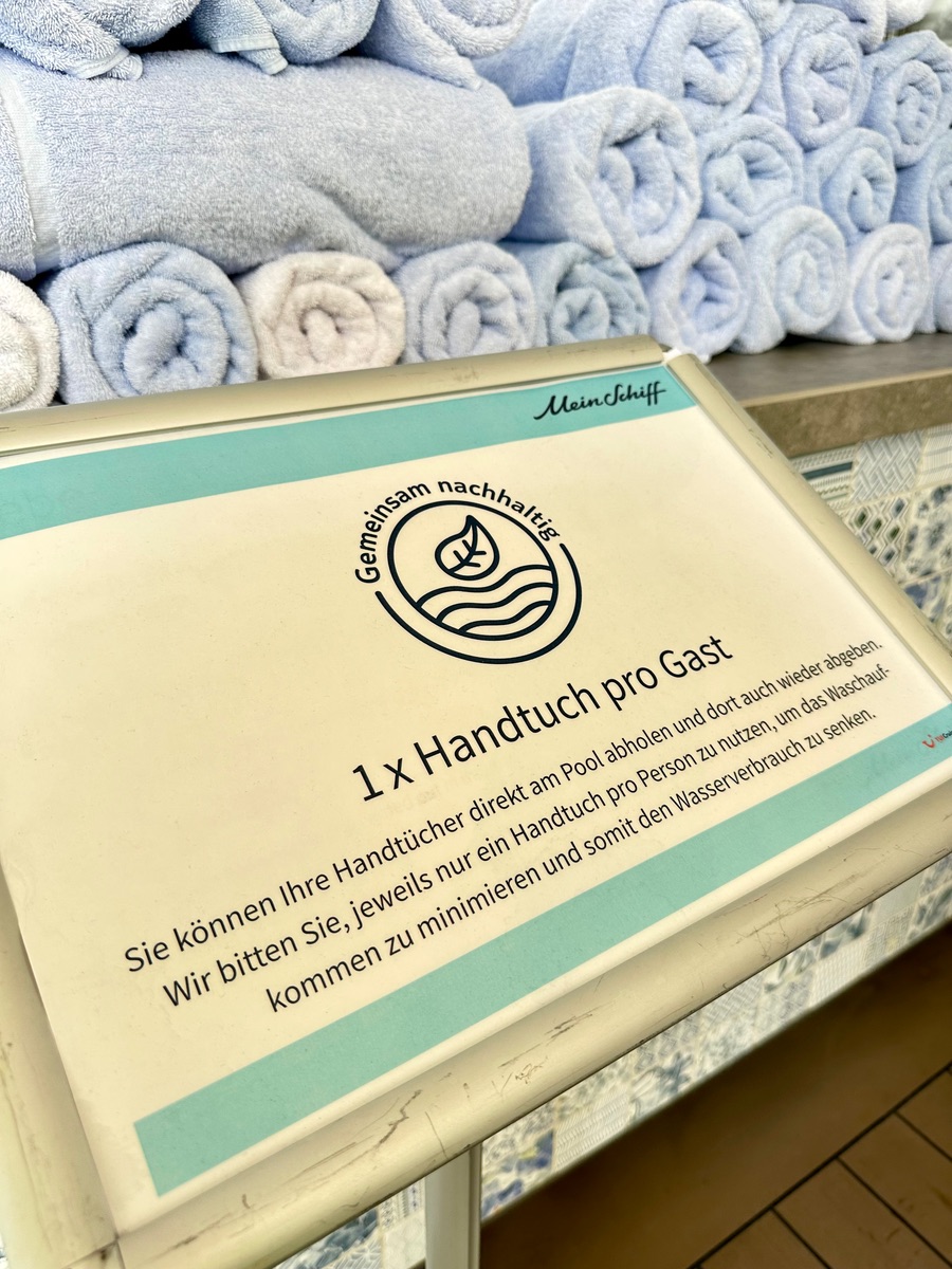 Dazu gibt's auch eine Handtuchkarte auf der Kabine.