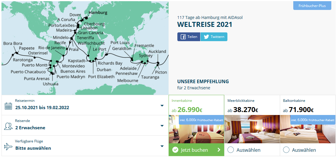 Frage an die Insider: Werden AIDA Weltreisen auch in anderen Preismodellen angeboten?