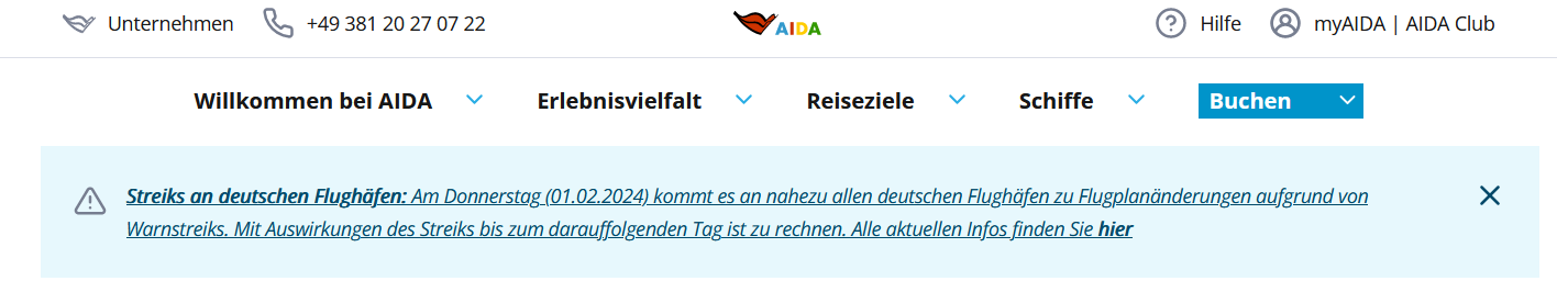 Im Urlaubskompass von AIDA ist dazu auch nichts ersichtlich.