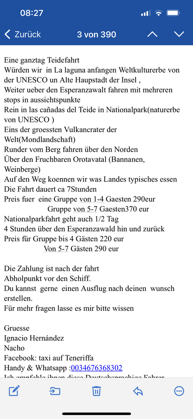 Ich habe Nacho bzgl eines Ausflugs auf Teneriffa angeschrieben! Er wurde hier im