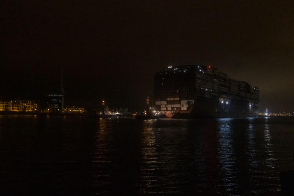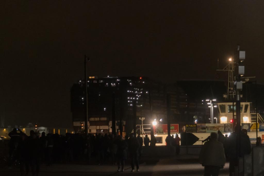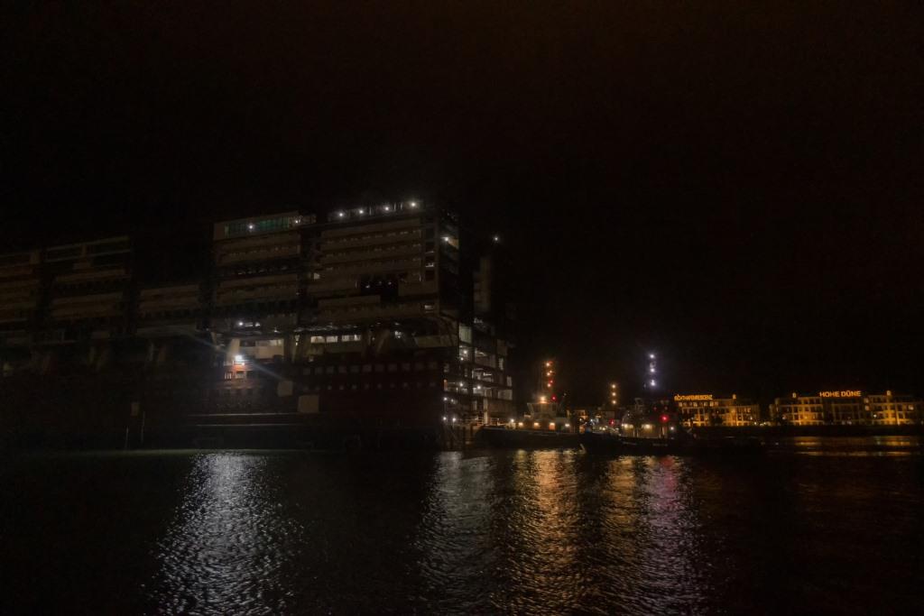 Das Teilstück der "Global Dream ist unterwegs. Nachdem sich das Ausdocken durch Windböen verzögert hat, schwamm das Teil gegen 16.45 Uhr im Seekanal. Schade, dass ich das Zeitraffervideo hier nicht direkt einstellen kann.