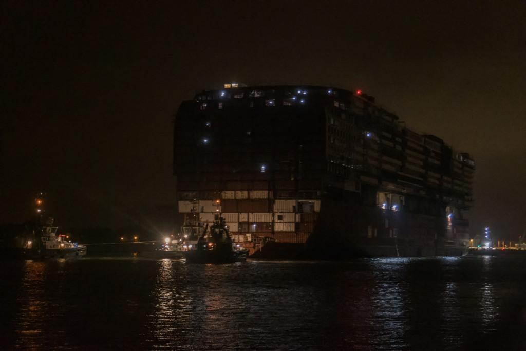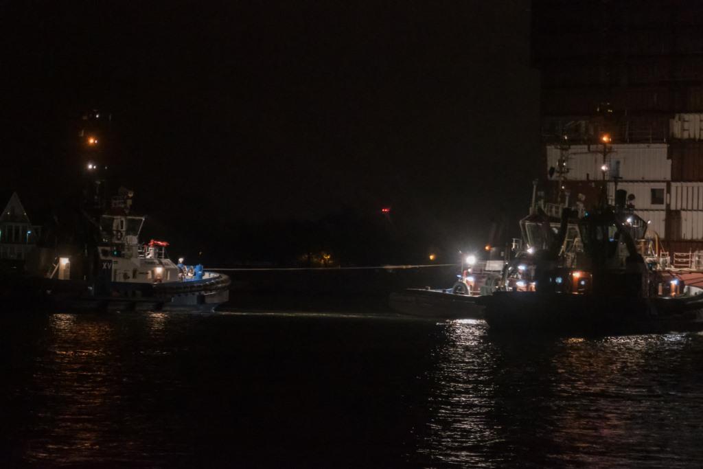 Dann wurden die Schlepper positioniert und nachdem der Seekanal gesperrt war, ging's los.