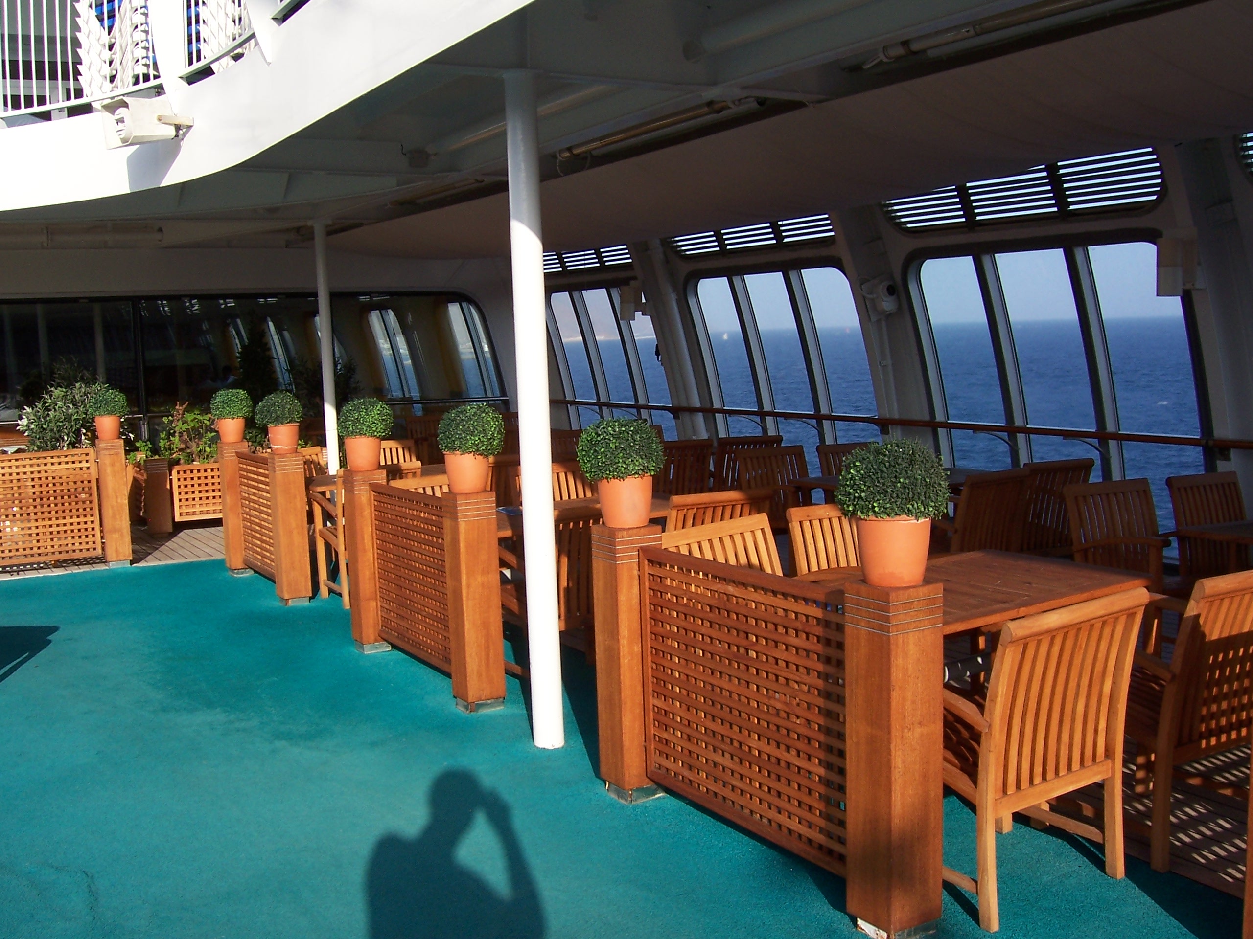 Warum nimmt der Cara ihren Reiz, ihre Besonderheit, ihren maritimen Charakter. Genau dieses Offene haben wir geliebt, genau wegen dieser hohen Scheiben buchen wir die neueren Atrium Schiffe (Generation 2) nicht mehr, man ist ja hinter Glas eingesperrt.