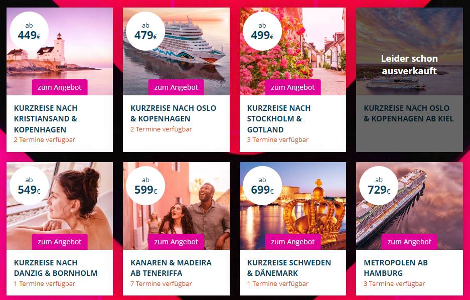 Also ich schaue schon seit 2-3 Wochen die Kanaren ab Gran Canaria ab dem 02.03. mit Flug ab HH, in der Balkonkabine (schlechtester Tarif)