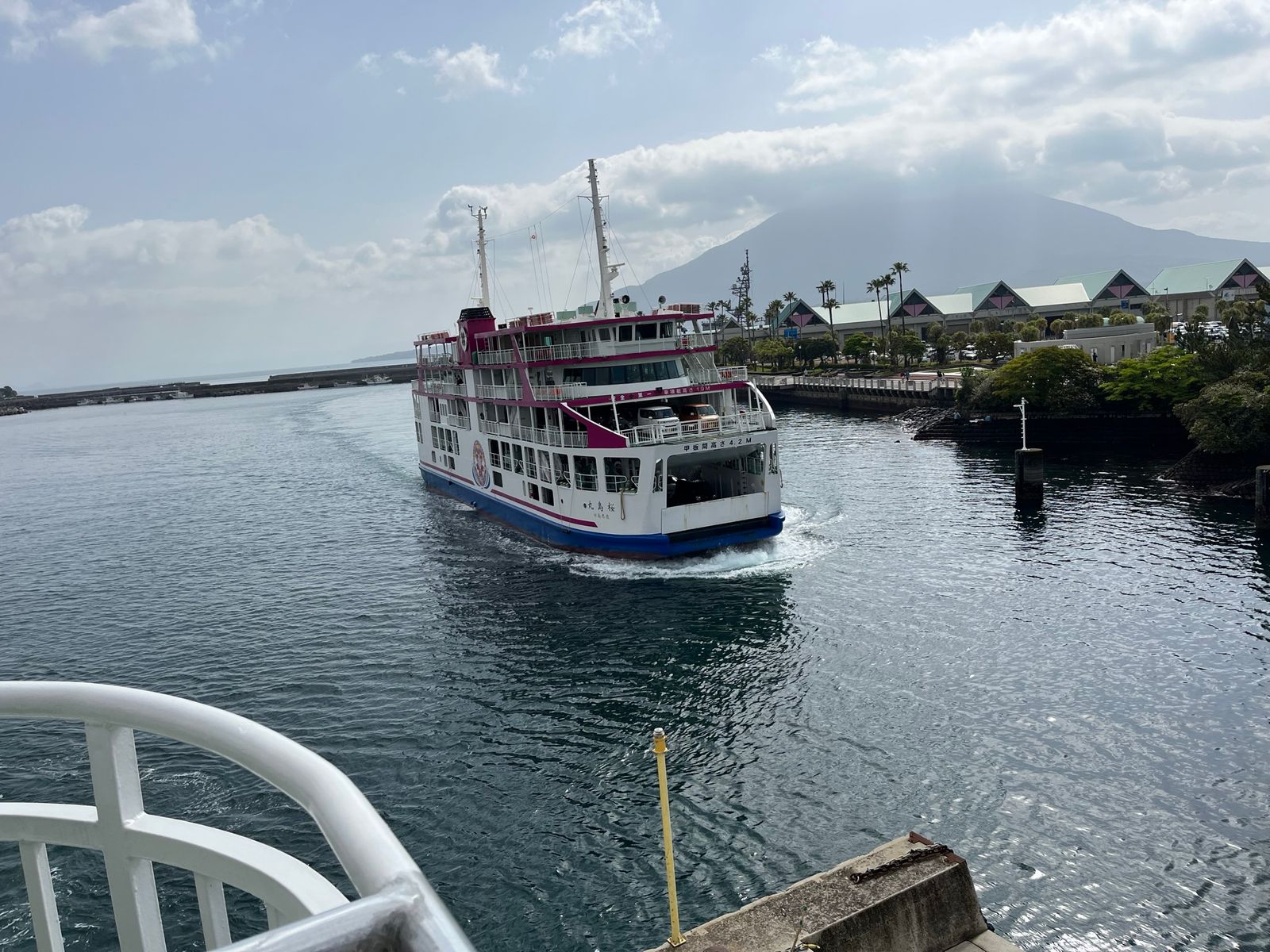 Man kann in Kagoshima sich eine CUTE Karte (ca. 7€) kaufen und alle Verkehrsmittel dann nutzen (Straßenbahn, Fähre, Bus). Wir haben unsere Cute Karte am Fähranleger gekauft. Vom Hafen bis zur Station der Straßenbahn geht man ca. 30 min, nicht gerade ein schöner Weg. Aus Zeitgründen sind wir mit dem Taxi, diese standen am Hafenterminal, zum Fähranleger für die Vulkaninsel Sakurajima gefahren. (ca. 20 Euro) – ach ja Geld haben wir gewechselt am Automaten im Hafenterminal. Man gibt US Dollar o.ä. hinein und bekommt dann den Betrag in Landeswährung zurück. Mit der Fähre sind wir rüber zum aktiven Vulkan Sakurajima gefahren.
