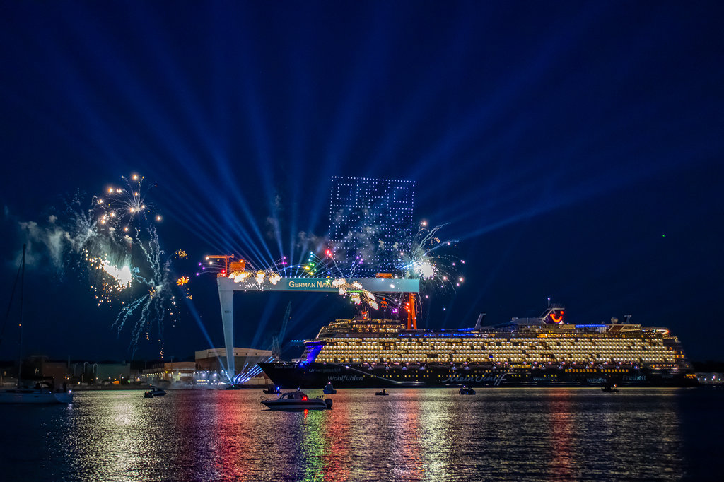 Die Kieler Nachrichten haben nun Taufdetails bekanntgegeben (nur 1 Std kostenfrei zu lesen). Sie bekommt ihren Namen vor dem Ostseekai neben den Werftkränen, da ist eine besondere Inszenierung geplant. Sie läuft gegen Nachmittag in die Kieler Förde ein und wartet bis Euribia und AIDAnova ablegen, um dann in Position zu gehen vor dem Ostseekai. Taufshow geht gegen 21:30 Uhr an Bord los und die Taufe an sich vermutlich gegen 22:00 Uhr.