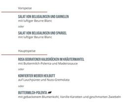 Ja, haben ganz normal bestellt, Hauptgang war Kalb und hätte uns interessiert, aber die Vorspeise und Dessert waren gar nicht nach unserem Geschmack
