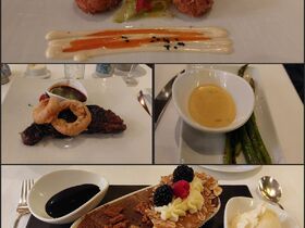 Da will man am liebsten den Balkon gar nicht mehr verlassen. Aber irgendwann war es dann doch Zeit zum Abendessen. Dort war dann auch eine Verabschiedung vom Küchen- und Restaurantpersonal die ein indonesisches Lied singend durch den Main Dining Room zogen.