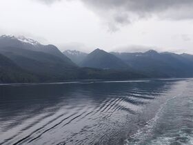 Gestern der Seetag fing mit Regen und Wind an. Es wurde aber besser als wir auf Höhe Vancouver Island kamen und dort schließlich in die Meerenge Johnstone Strait fuhren.