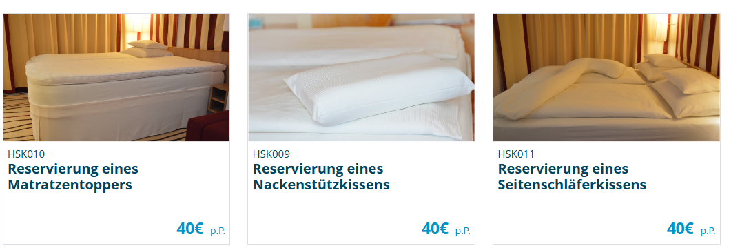25 EUR habe ich bezahlt, nicht 20. Ist dieselbe Reise wie deine. Quelle: Rechnung von Aida, HSK009; Reservierung eines Nackenstützkissens