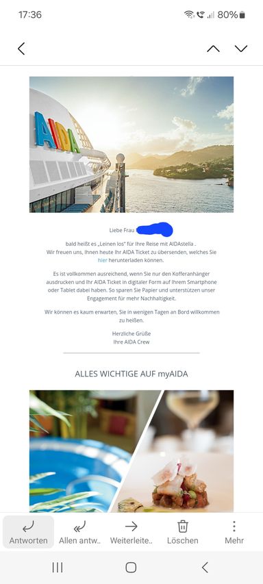 Kann gut sein dass die Leute die 43 Tage fahren das Ticket erst bekommen wenn auch die über AIDA gebuchte Rückflüg feststehen .