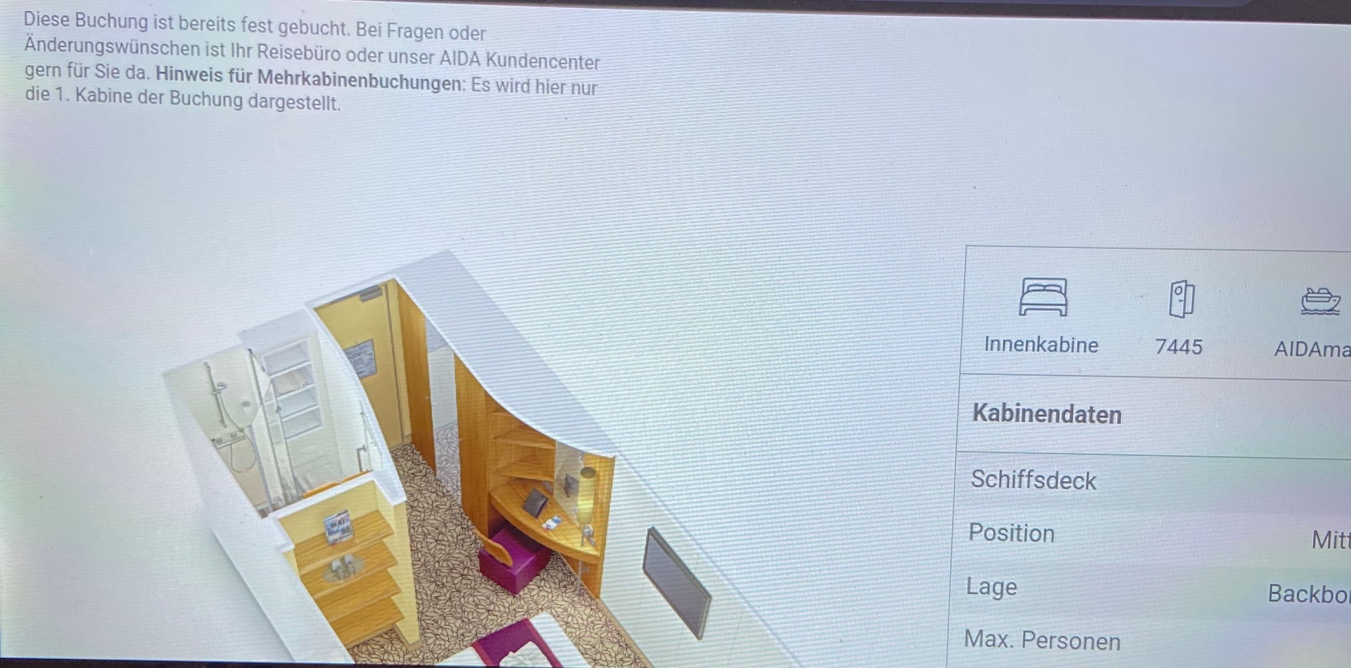 Da es eine Mehrkabinenbuchung war steht dort der Hinweis das nur die 1. Kabine aufgeführt wird.