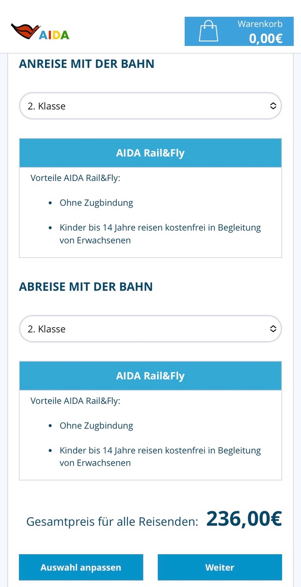 Ich könnte für in 12 Tagen unter Meine Reise / An-Abreise dies so buchen ….