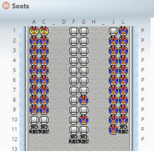Die Bestuhlung in der Premium-ECO 2-2-2 sein, aber wie am Bild zu sehen ist, scheinen dabei nur die Plätze D/H frei zu bleiben.