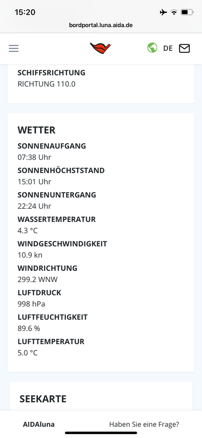 Noch ein Abendgruß. Der Seegang nimmt zu, ich habe die ersten Seabands an den Handgelenken gesehen und das Show Programm wurde umgestellt, IMG_5276.mp4