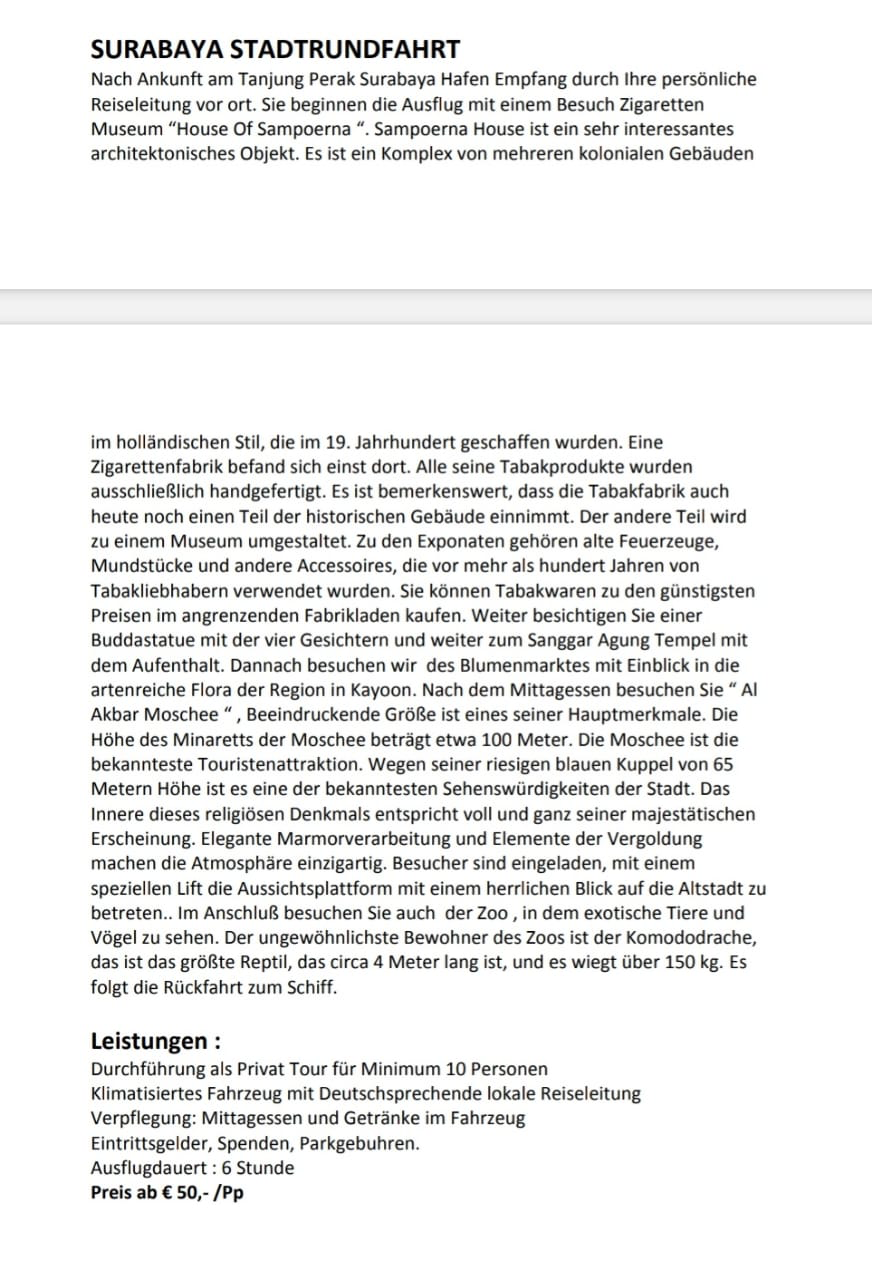 Wenn wir 12 Leute sind , bekommen wir Rabatt und die Tour kostet pP 87$ zuzüglich Taxi