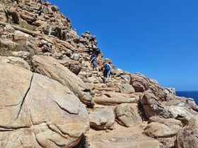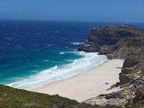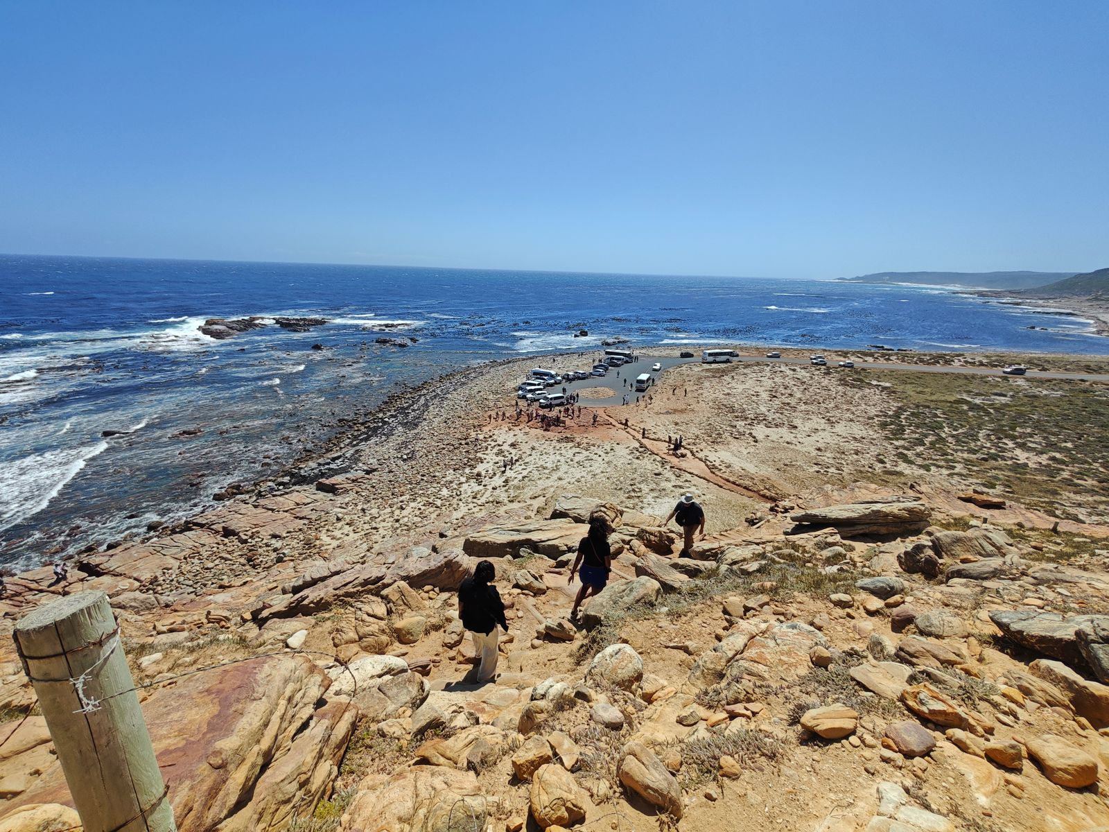 Während der Fahrt kann man sich entscheiden, ob man vom Berg runter zum Kap der guten Hoffnung wandern möchte oder man mit Christiane im Auto direkt zum Kap fährt. Wir vier haben uns für die Wanderung entschieden. Es war extrem windig und man sollte keine Knieprobleme od. ähnliches haben. Ich würde den Weg als Schwierigkeitsstufe mittel (rot) beschreiben. Aber die Aussicht ist grandios und man sollte ihn wenn es die Fitness zulässt unbedingt gehen, ca. 45 Min. einkalkulieren.