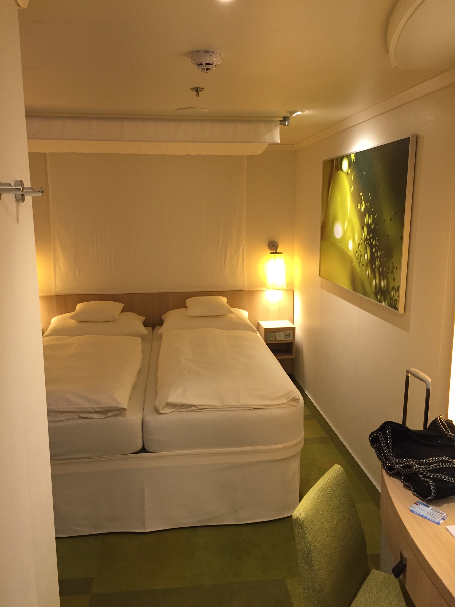 Innenkabine, ganz vorne am Bug. Ruhig aber durch die Lage weite Wege.