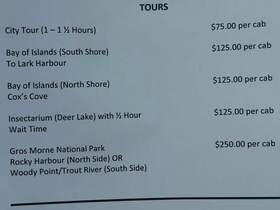 Hier die Taxipreise für Corner Brook