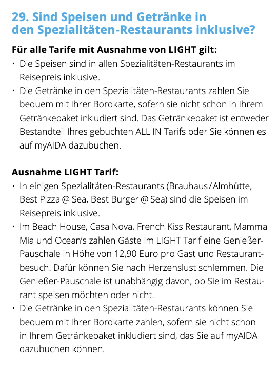 Absatz 1: Na so dumm kann man (AIDA) hoffentlich nicht denken. Ich meine, Brauhaus & Co. stehen auf den Tarifbeschreibungsseiten auch bei Light als inkludiert drin.