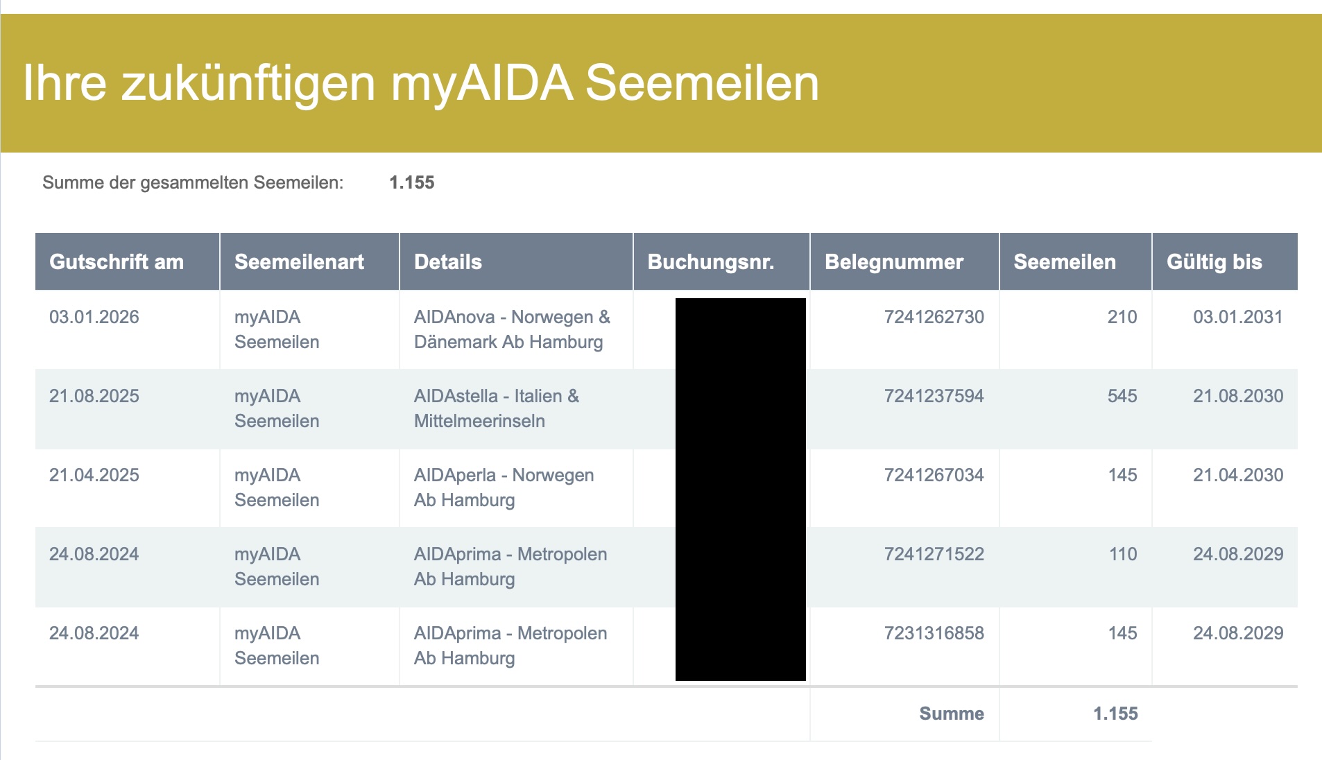 Es steht dort: "Ihre zukünftigen myAIDA Seemeilen".