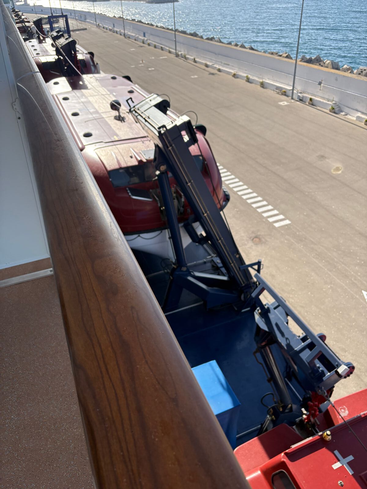 "Der Arm" des großen Rettungsboptes stellt die Sichtberhinderung war. Des Weiteren hört man die Generatoren der Rettungsboote permanent.