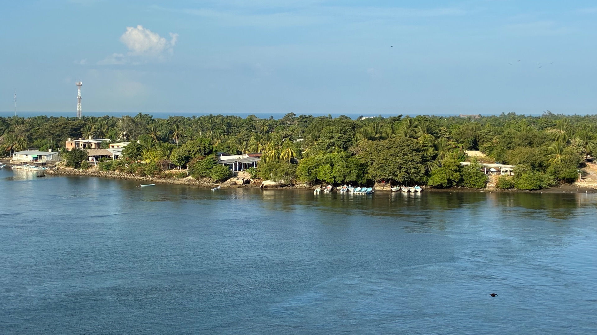 Der Strand in Hafennähe sah beim Vorbeifahren nicht sonderlich einladen aus. Gegenüber vom Schiff auf der anderen Flussseite war eine weiterer Strand. Dort war aber keine Infrastruktur erkennbar. Er müsste sich in der Nähe vom „Club Naval“ befinden.