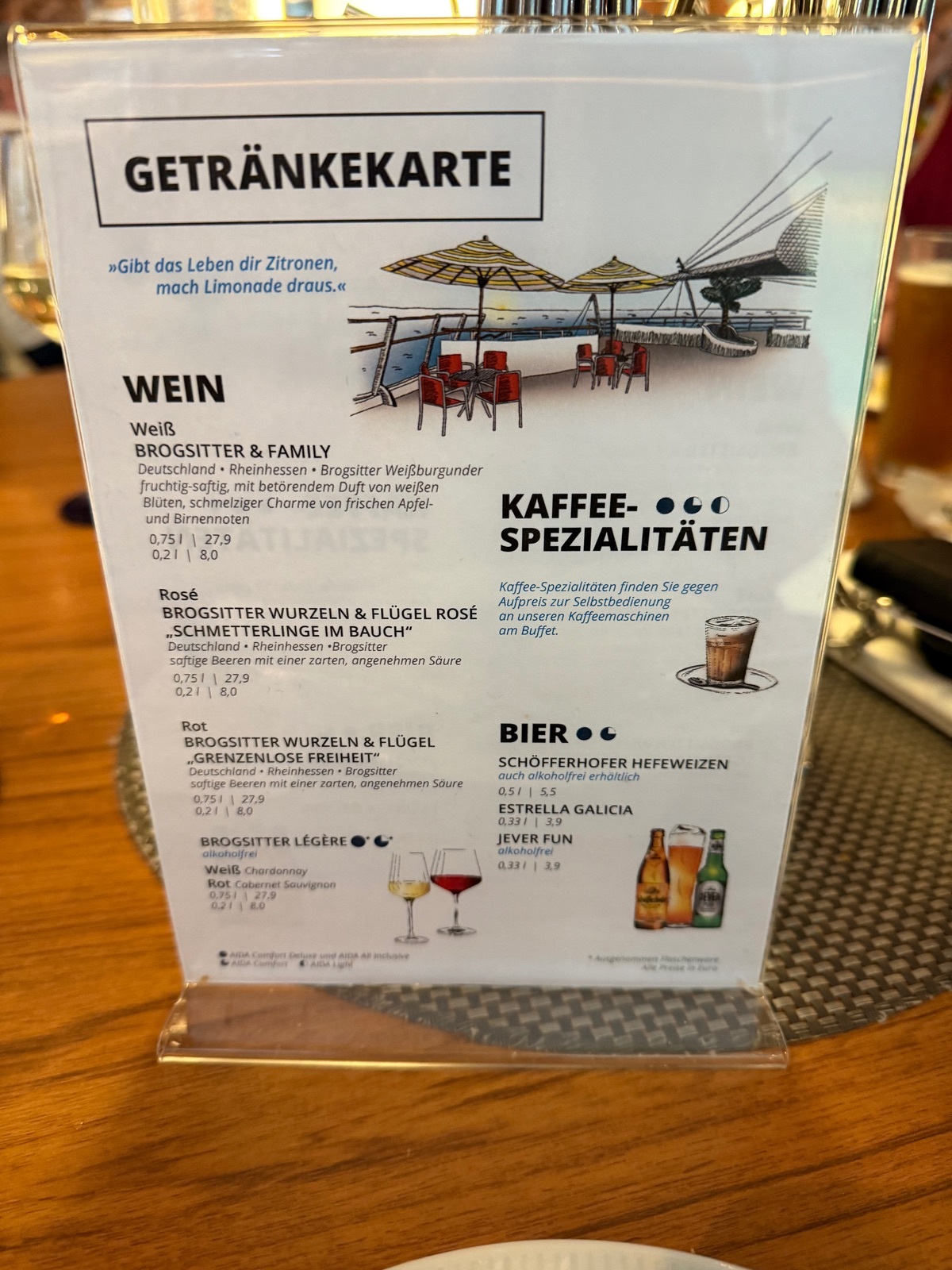 Das offizielle Menü war schon im Februar 2024 so. Für unsere Kids haben wir vorher an Bord während der "Reservierungsstunde" vor dem Eingang (in AIDA heute angekündigt, da wohl noch an vielen Tischzeiten freie Plätze waren) vorbei geschaut und alternatives Essen direkt abgesprochen. Dieses wurde dann serviert.