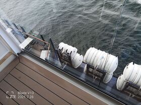 Wenn man auf dem Balkon sitzt, hat man freien Wasserblick. Nur, wenn steht, kann man dann die Rettungsmittel sehen. Zur linken Seite hin sieht man auf den Außenbereich des „GANZ SCHÖN GESUND“. Gestört hat das überhaupt nicht.