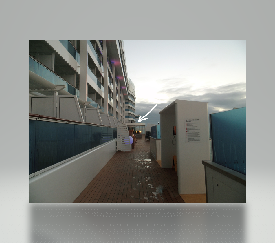 Wir haben aus den Nachbarkabinen keine Geräusche gehört und konnten sehr gut schlafen. Wegen etwaigem Fahrtwind ist dieser Balkon nicht immer nutzbar. Trotzdem würden wir diese Kabine gerne wieder nehmen. Auch im PREMIUM.
