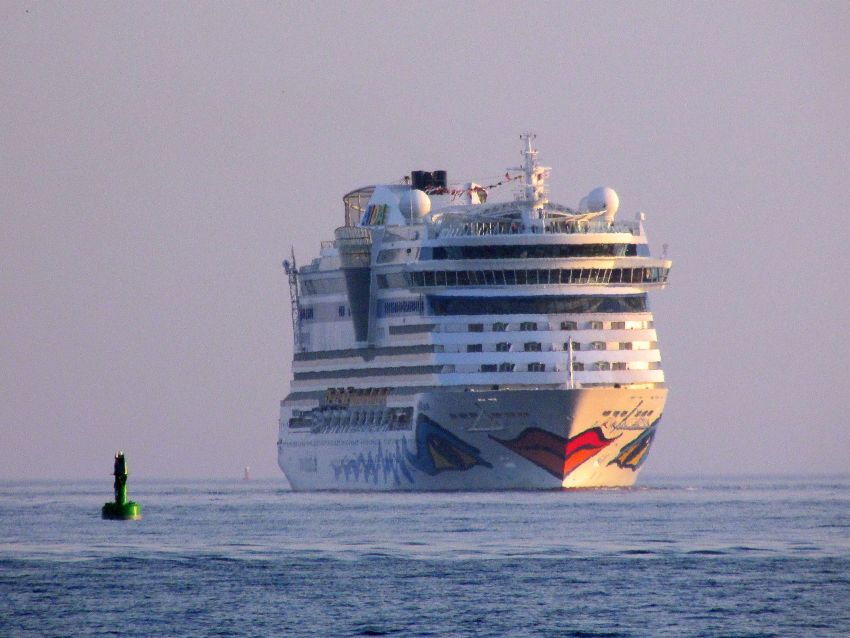 05:47 Uhr: AIDAdiva zeigt sich am fernen Horizont ...