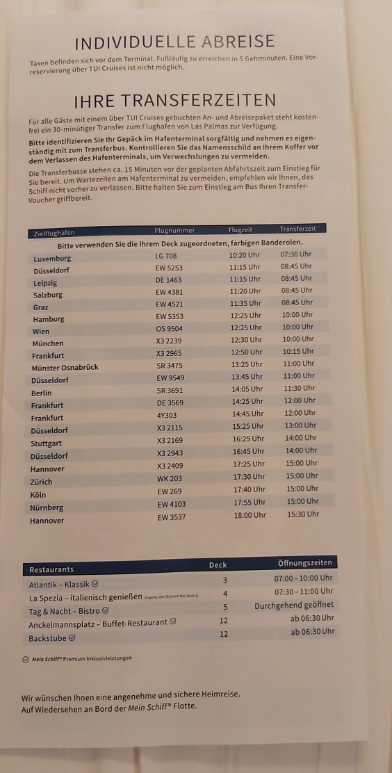War zwar mit An-und Abreisepaket über Mein Schiff, aber ich stelle dir mal die Zeiten der Abreise ein, zur Orientierung. Wir haben übrigens überpünktlich angelegt.