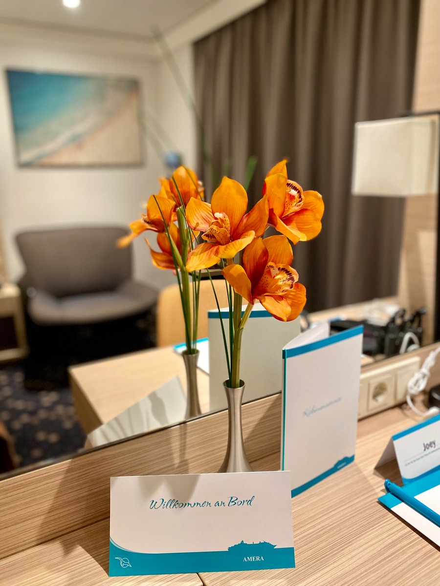Während unserer Adventsreise, haben wir diese schöne Kabine auf MS Amera bewohnt und waren mehr als zufrieden. Kaum eine Einschränkung der Sicht, Kabine liegt auf dem Promenadendeck. Kurze Wege nach draußen um mal schnell ein Foto zu machen oder einfach frische Luft zu tanken. Außerdem sehr kurze Wege zu Harrys Bar und den Restaurants, Amera, Ozean und Pichlers. Die Kabine schön hell und geräumig, und im Bad eine Dusche. Dazu ein begehbarer Kleiderschrank. Wir können die Kabine uneingeschränkt weiterempfehlen und würden diese auch wieder buchen. Das letzte Foto zeigt die „Sichtbehinderung“