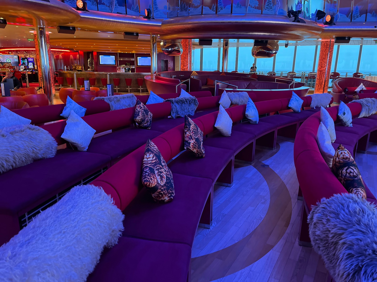 Ich war irgendwann zwischen 18 und 19 Uhr wieder auf dem Schiff und hatte das Gefühl, dass da schon wieder sehr viele Leute an Bord waren. Das Theatrium war zur Prime Time auf jeden Fall gut gefüllt. Da hat man meiner Meinung nach gar nicht gemerkt, dass theoretisch noch Landgang möglich ist. -