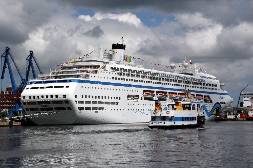 Die alte AIDAblu unter einem azurblauen auf der "Kieler Förde"