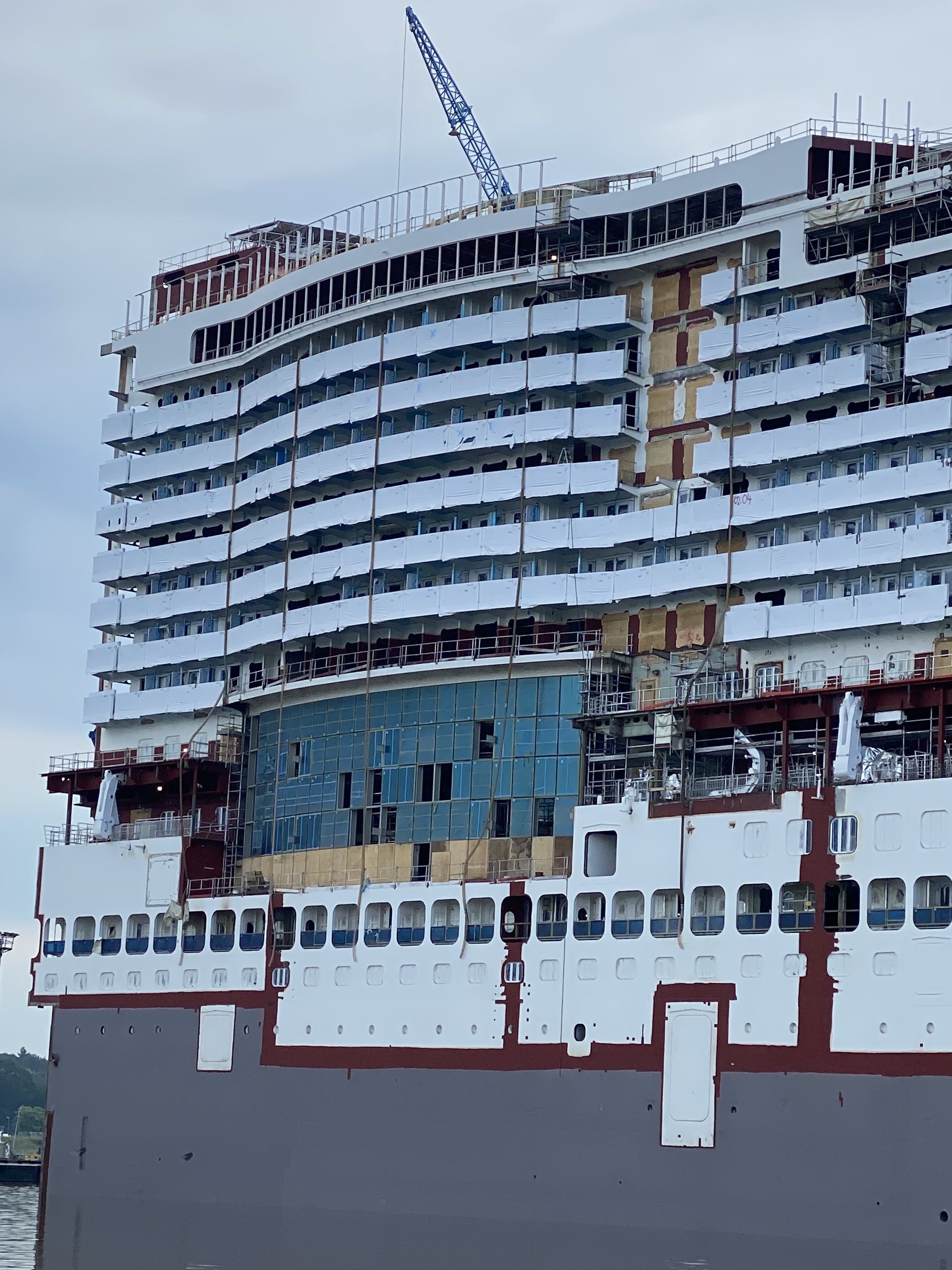 Momentan werden die Kabinen eingebaut. Auf den Bilder kann man es schon erkennen . Laut Mitarbeiter der Werft ist die Cosma voll im Zeitplan und soll nicht „“künstlich „“ verzögert werden . In Halle 6 stehen schon die nächsten Blocks zur Montage bereit , Bilder stell ich gleich noch ein 😊