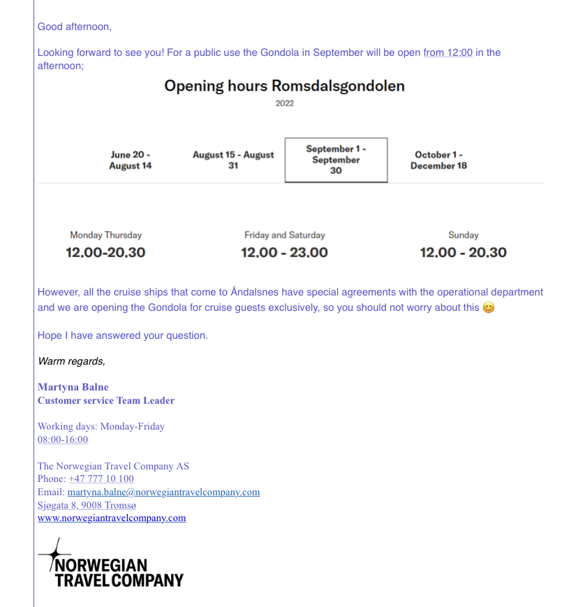 Ich hab den Ausflug damals gemacht. Wir wurden vom Hafen mit dem Bus abgeholt und auf den Varden gefahren. Dort hatten wir kurz Zeit den Ausblick zu genießen. Dann ging es mit einem Wanderführer bergab. Die Wege waren recht steil, aber gut begehbar. Es gab noch einen Zwischenstopp an einer Jagdhütte, dann ging es zum Museum. Das Museum fand ich sehenswert, man hätte es aber auch gut auf eigene Faust erreichen können. Nach einem Aufenthalt im Museum konnten wir entweder alleine oder in der Gruppe zurück zum Schiff.