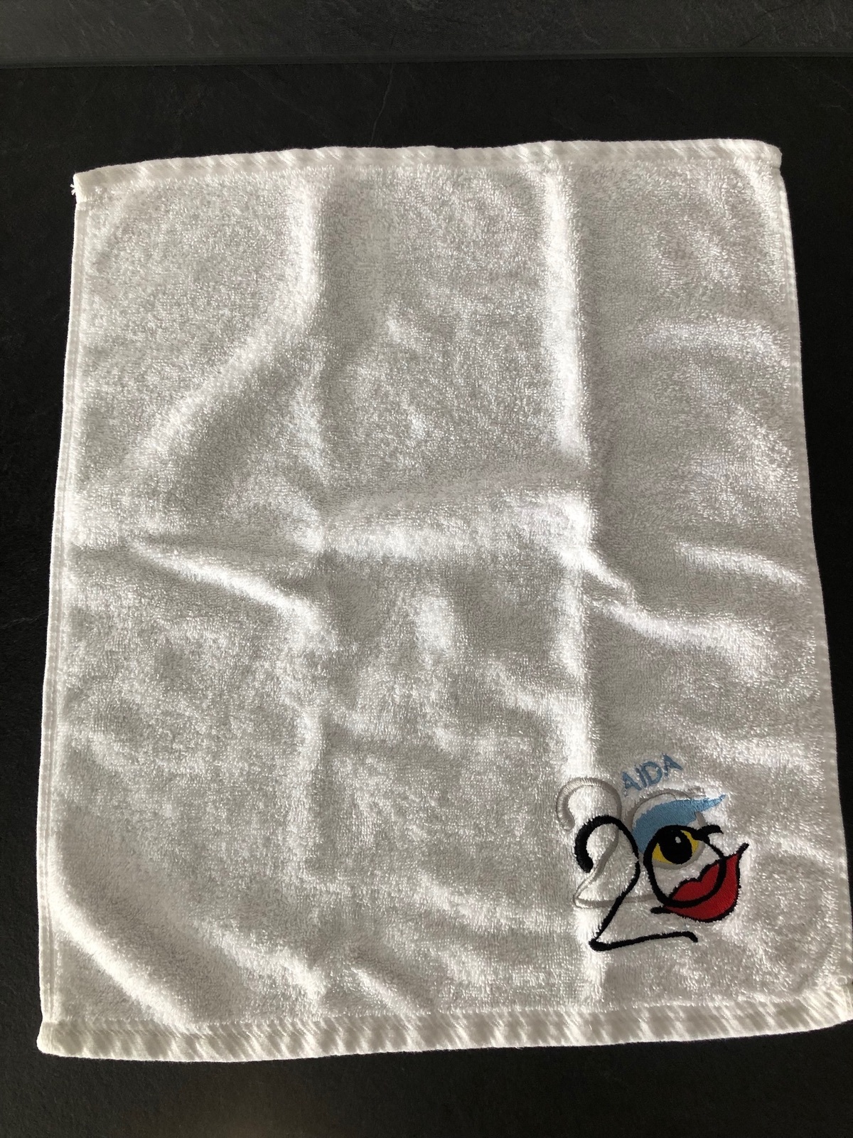 Dafür möchte ich gerne das AIDA-Gästehandtuch von diesem Jahr mit dem Schriftzug "COSMA" haben.