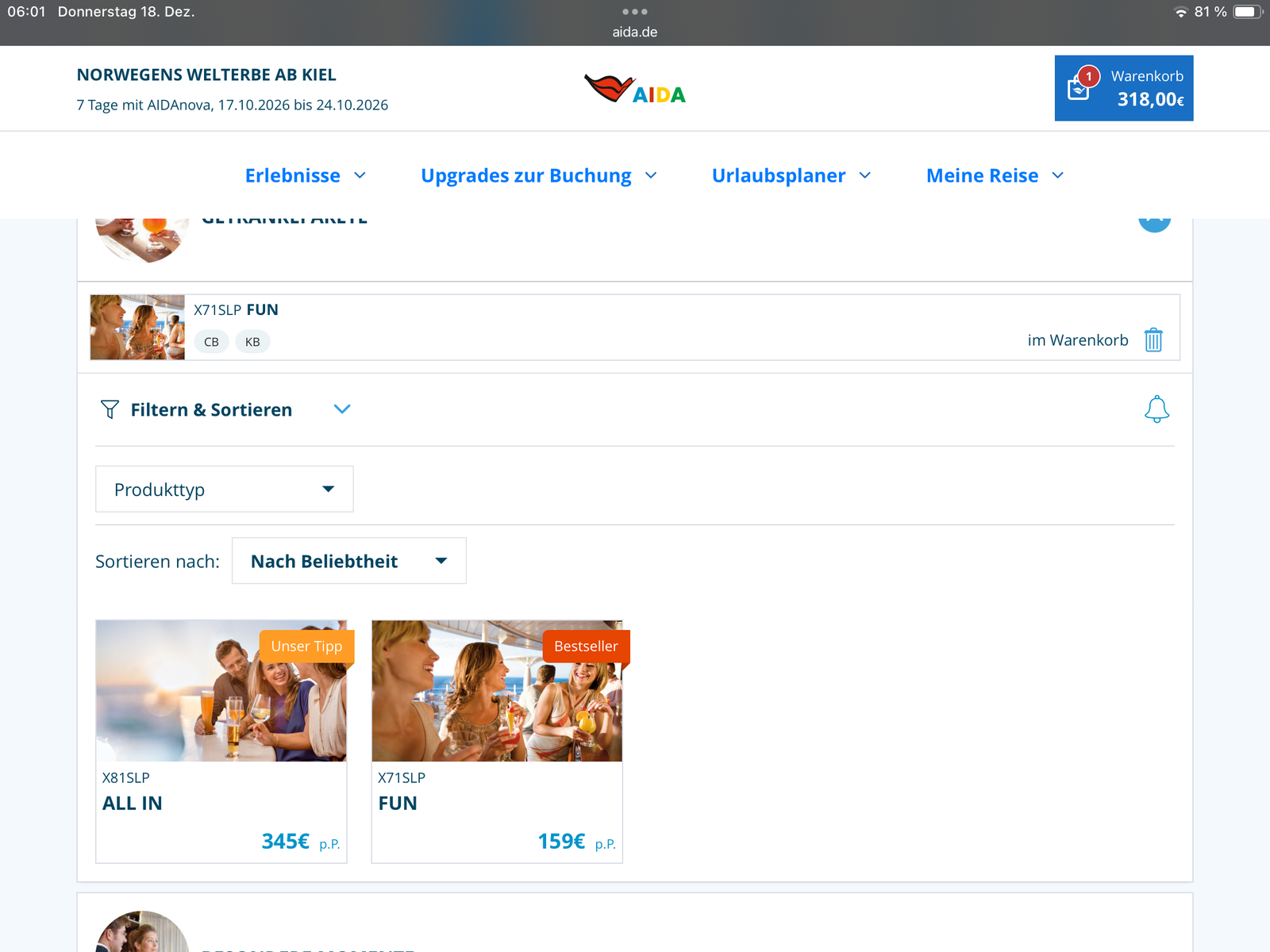 Gast 3 " Ja, Schatz, ab an der Bar hatten die keinen und wollte nicht zur AIDA-Bar rennen. Die sollen noch einen haben."