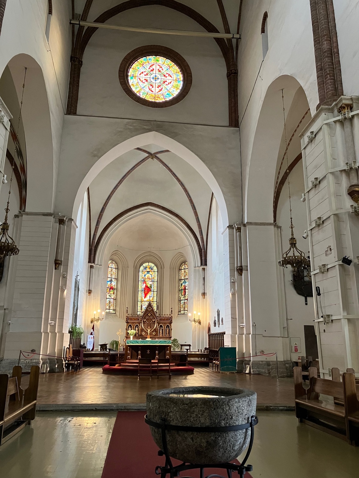 Als nächstes bin ich zur St.-Petri-Kirche gegangen, denn da kann man, wie ich zumindest gelesen hatte, den Turm besteigen, und ich gucke ja immer danach, von wo man sich die Stadt von oben anschauen kann. Leider war der Turm dann aktuell „closed“. 🙁 Aber wo ich schonmal da war, habe ich für 3€ Eintritt dann wenigstens die Kirche von innen gesehen.