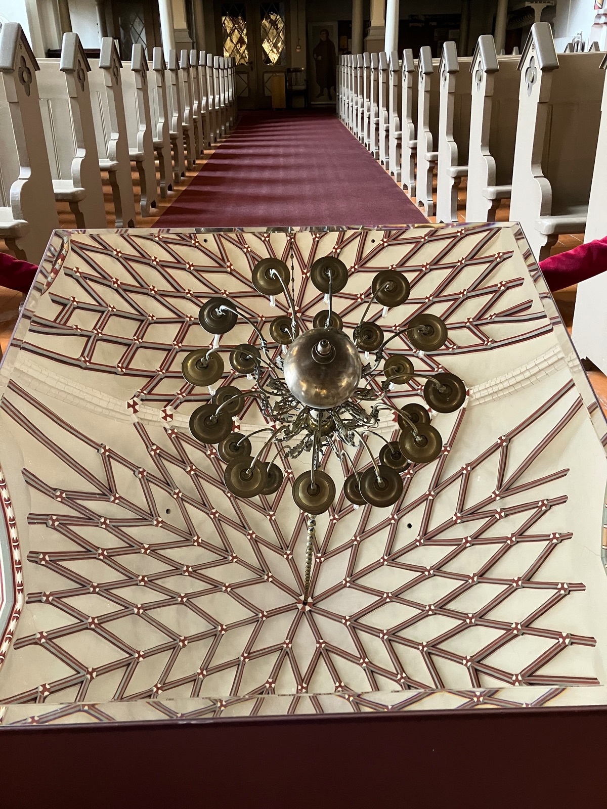 In der dritten (und letzten) Kirche für heute, St. John, gab es wieder was ganz Ungewöhnliches. Die sind besonders stolz auf die schön restaurierte Decke. In der Vergangenheit hatte der Zustand und auch die Statik an sich sehr gelitten, weil die Dachböden der Kirchen für Geschütze verwendet wurden. Man könnte einfach den Kopf in den Nacken legen und sich die Decke anschauen. 🤷🏻♀️ Hier steht aber zusätzlich noch ein schräg gestellter Spiegel auf dem Boden: