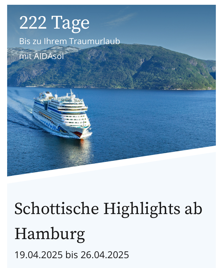 Jetzt sind die neuen Reisen bei Aida auf der Homepage zu sehen.