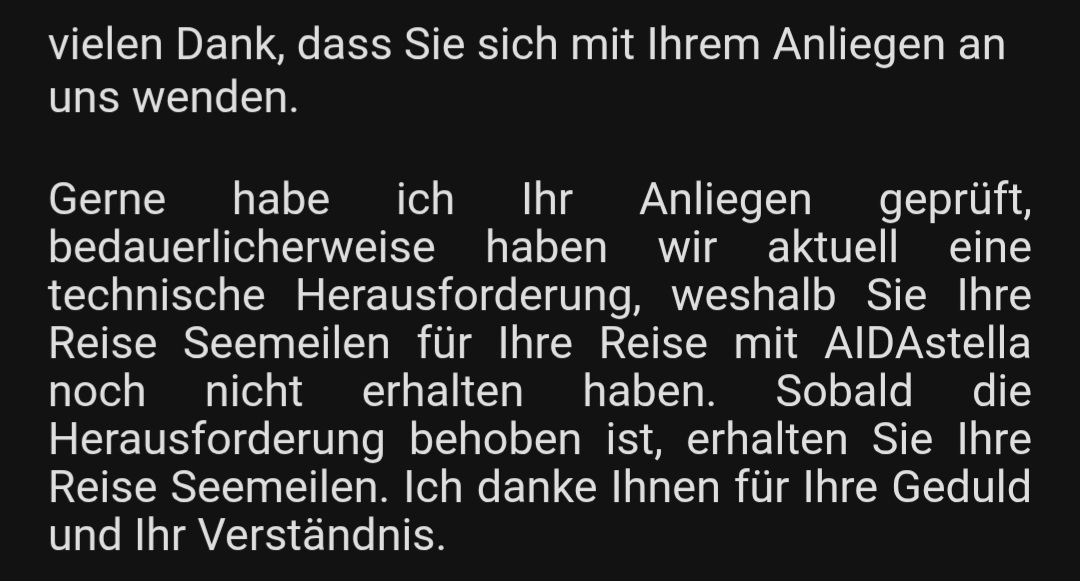 Nach heutiger Rückmeldung meiner Reiseberaterin gibt es immer noch "Herausforderungen" bei den Gutschriften der Seemeilen.