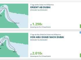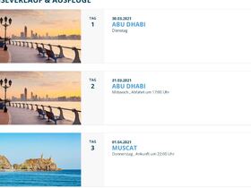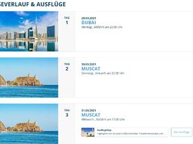 Wenn ich mir die Daten aber genau anschaue, dann stimmen die Tage nicht überein. Bei der einen Tour ist die Prima am 30.03. in Muscat, bei der anderen Tour in Abu Dhabi???