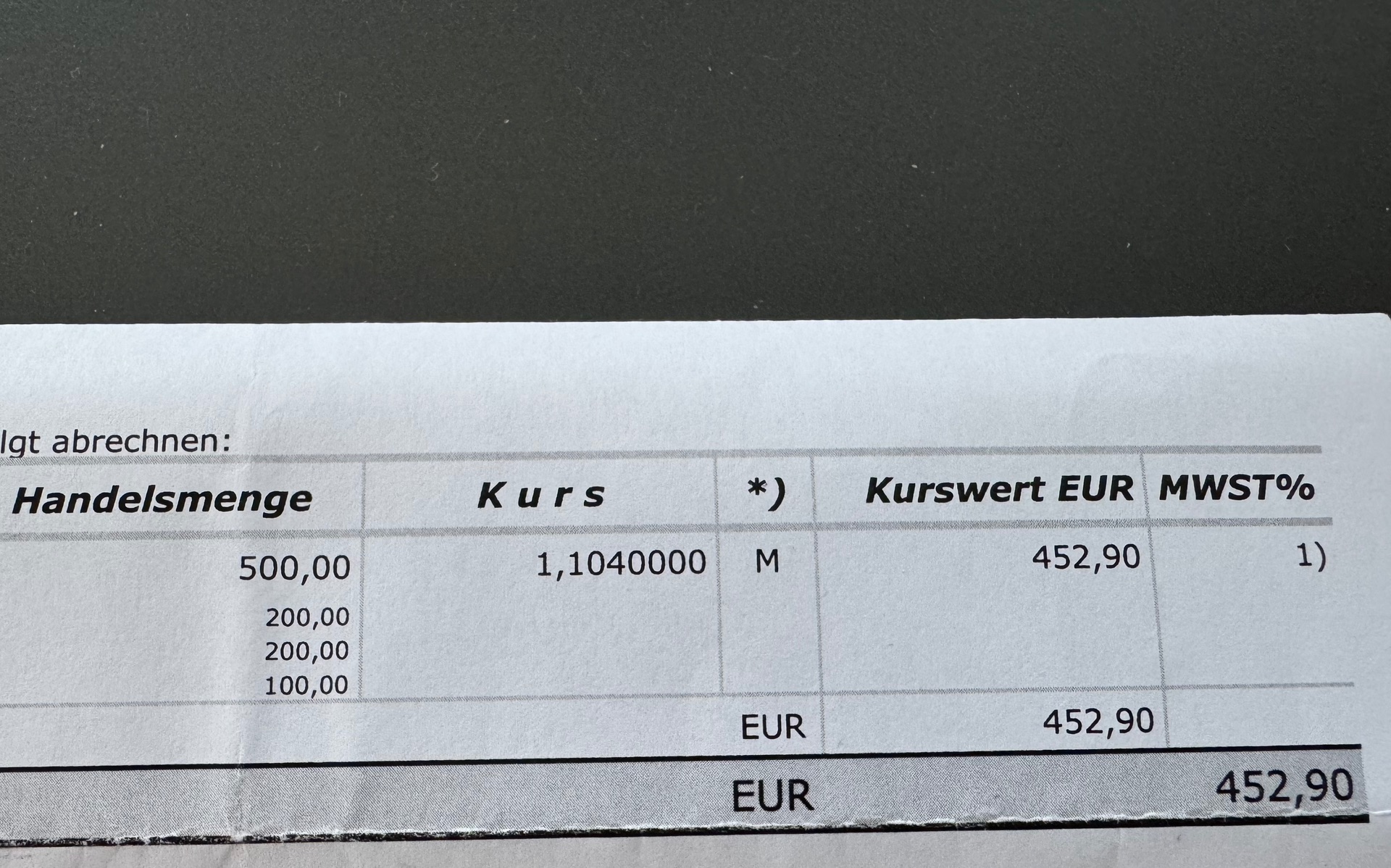 Bei dem schlechten Kurs wären Extragebühren auch ziemlich grenzwertig gewesen. Am 25.09.2025 war der Interbankenkurs bei 1,1750 Also wäre erfahrungsgemäß ein normaler Kaufkurs für USD-Bargeld bei ca. 1,1500 gewesen bei den Banken in meiner Nähe.